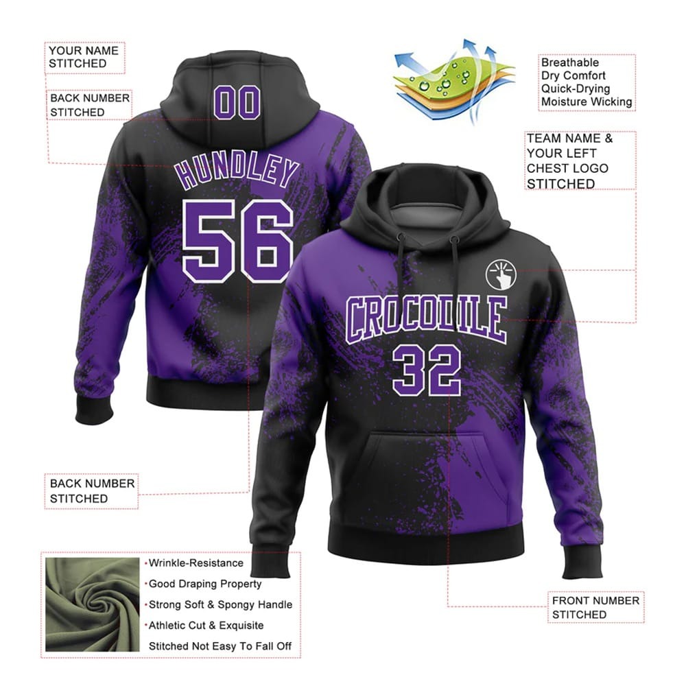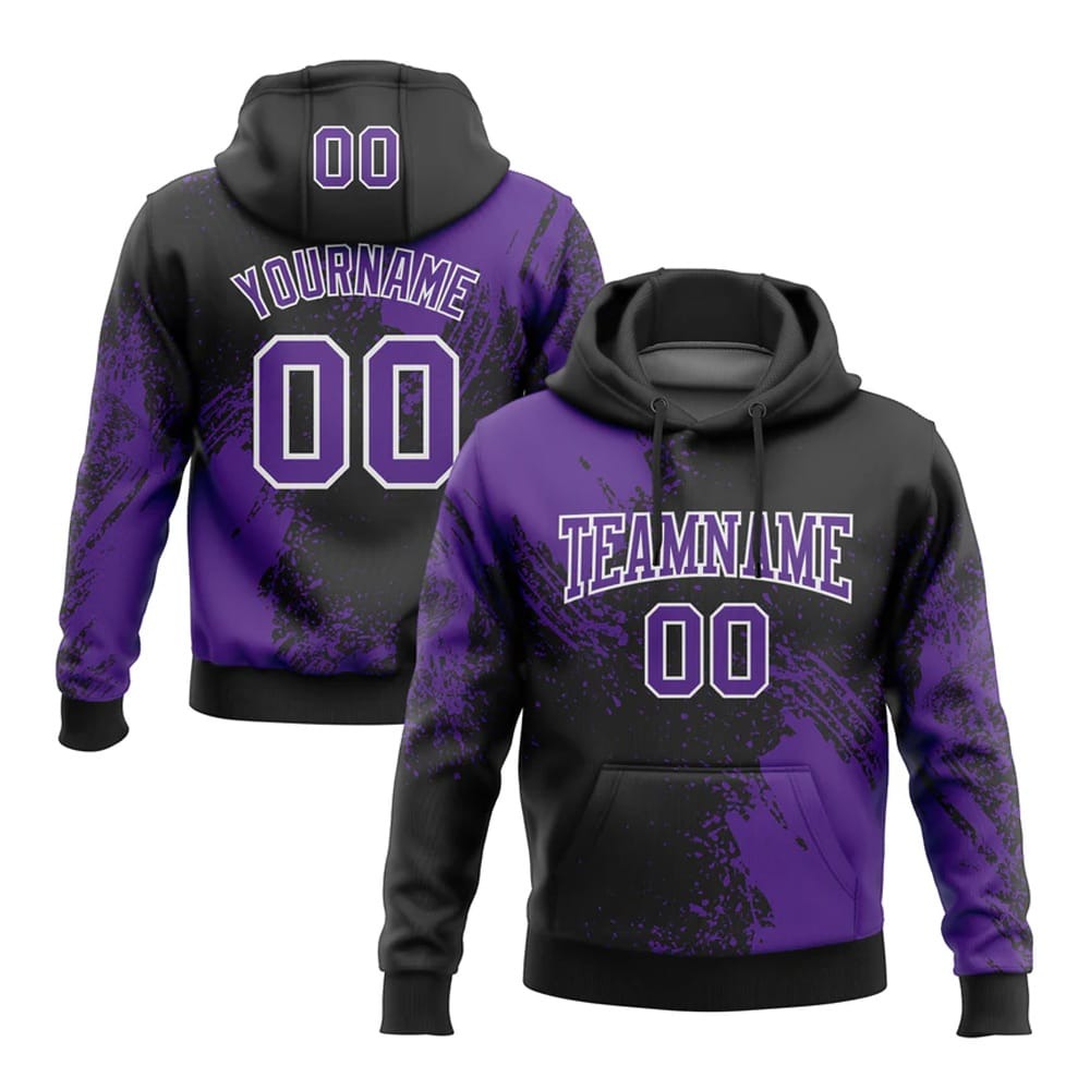 Custom Stitched Black Purple-White 3D Pattern Design Abstract Brush Stroke Sports Pullover Sweatshirt Hoodie Custom Stitched Black Purple-White 3D Pattern