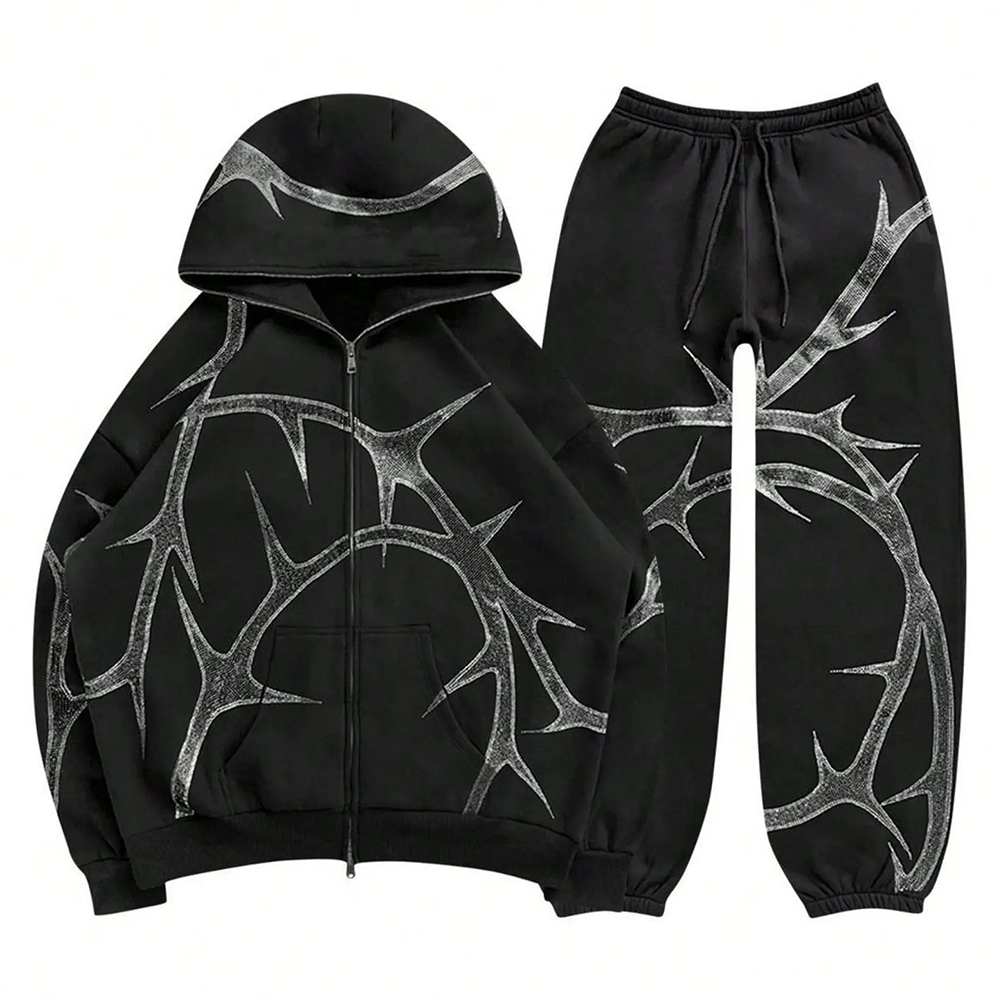 Black Thorn Print Tracksuit Set
