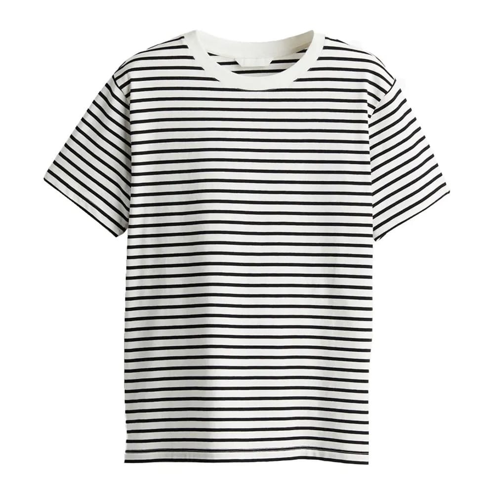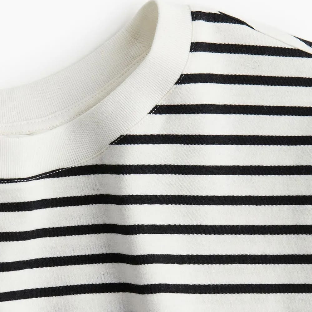 - Straight-cut T-shirt in soft cotton jersey with a round, rib-trimmed neckline and gently dropped shoulders.