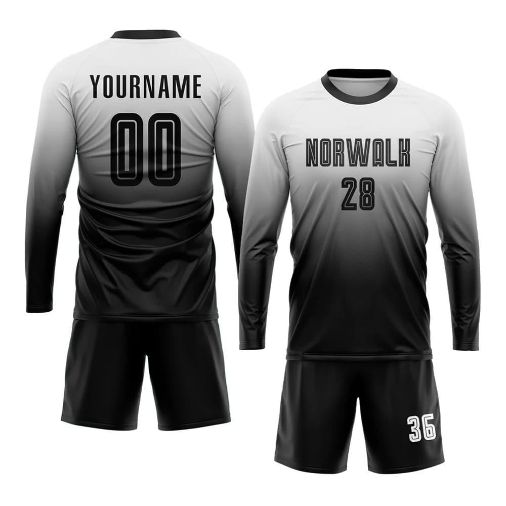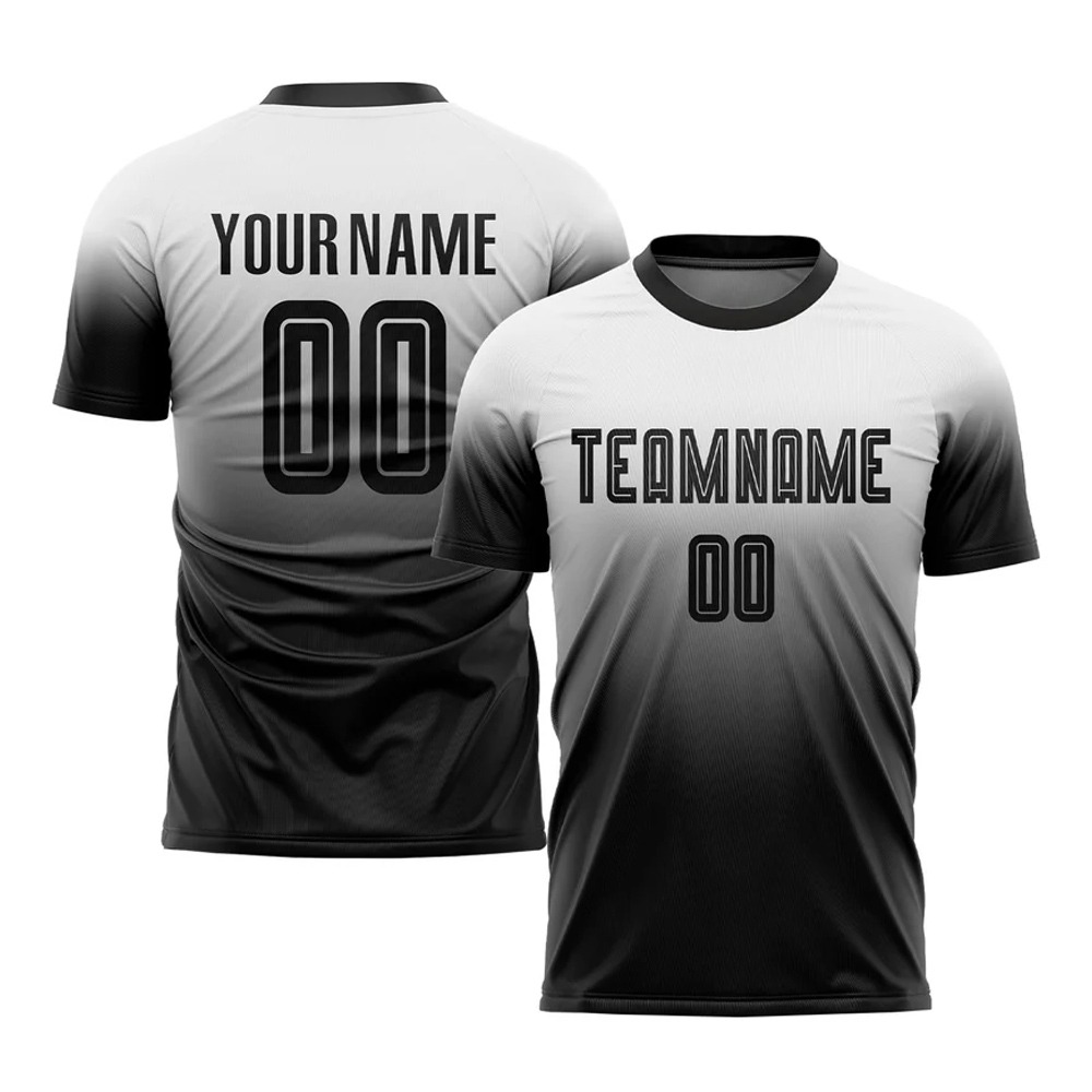 Home SPORTS WEARS Soccer Uniforms Custom White Black Sublimation Fade