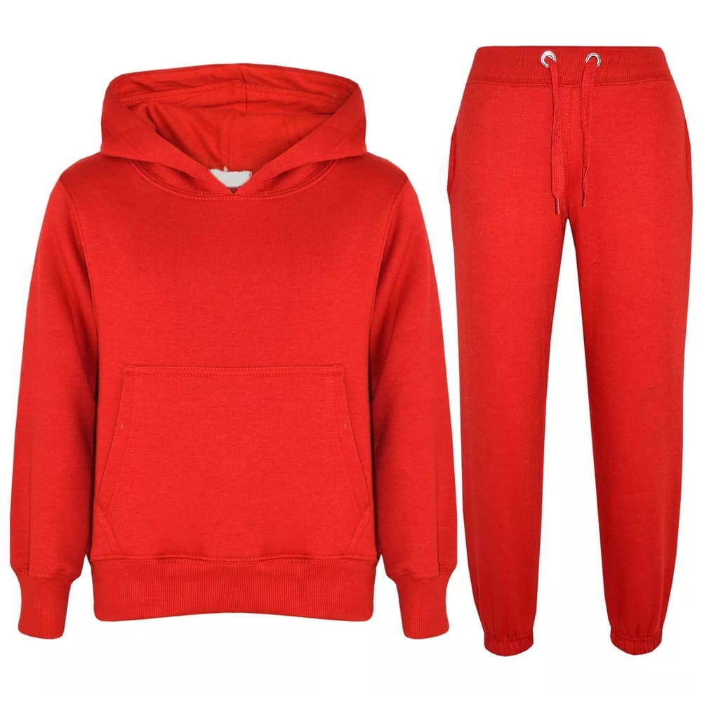 • Girls Boys Plain Red Hooded Hoodie Tracksuit Jogging Suit