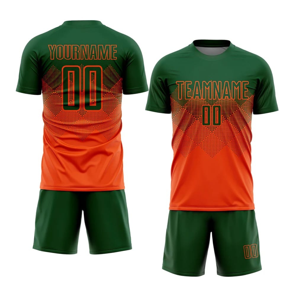 Home SPORTS WEARS Soccer Uniforms Orange Green Black Sublimation